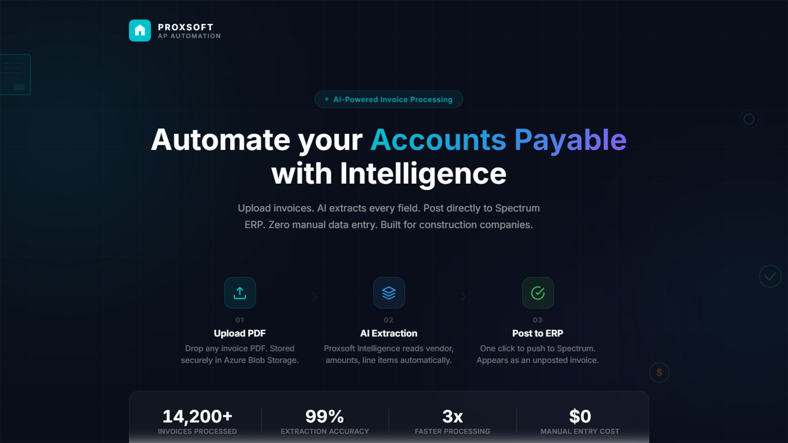 Join forward-thinking contractors who are eliminating manual invoice entry and posting invoices into Spectrum in seconds, not hours.